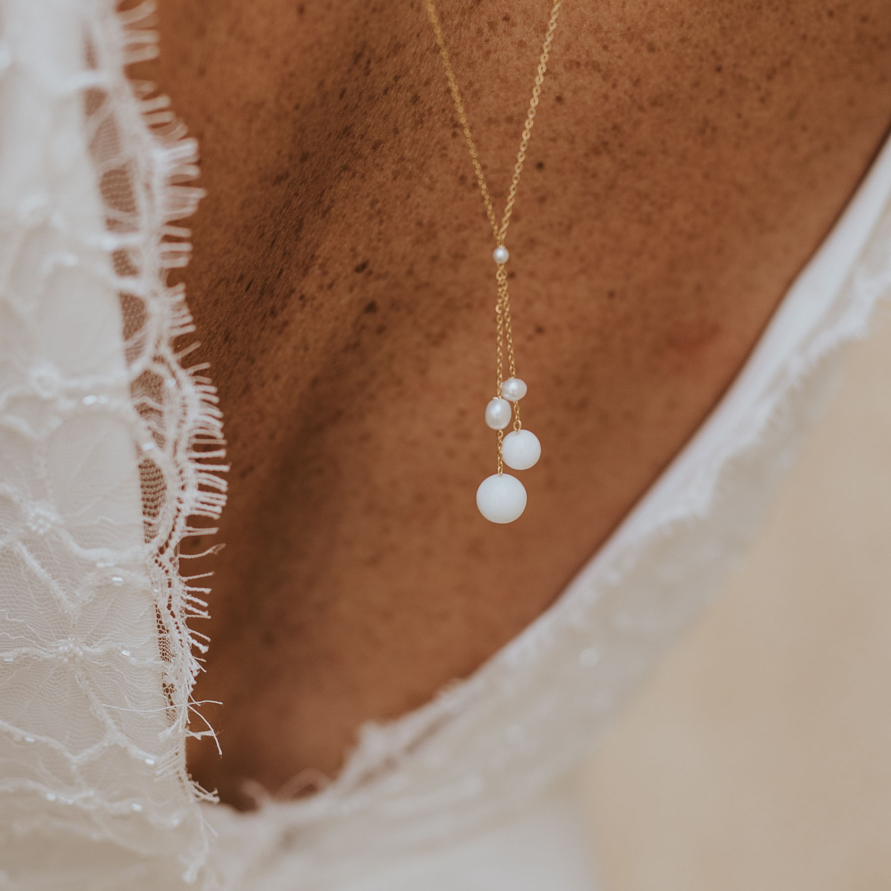 Collier de dos avec un pendentif sobre et élégant, composé de perles d’eau douce, de perles de porcelaine pour un rendu minimaliste. Ce bijou de mariage est monté sur une fine chaîne. Pour compléter votre parure, découvrez tous les bijoux de mariage de la série JOAN.