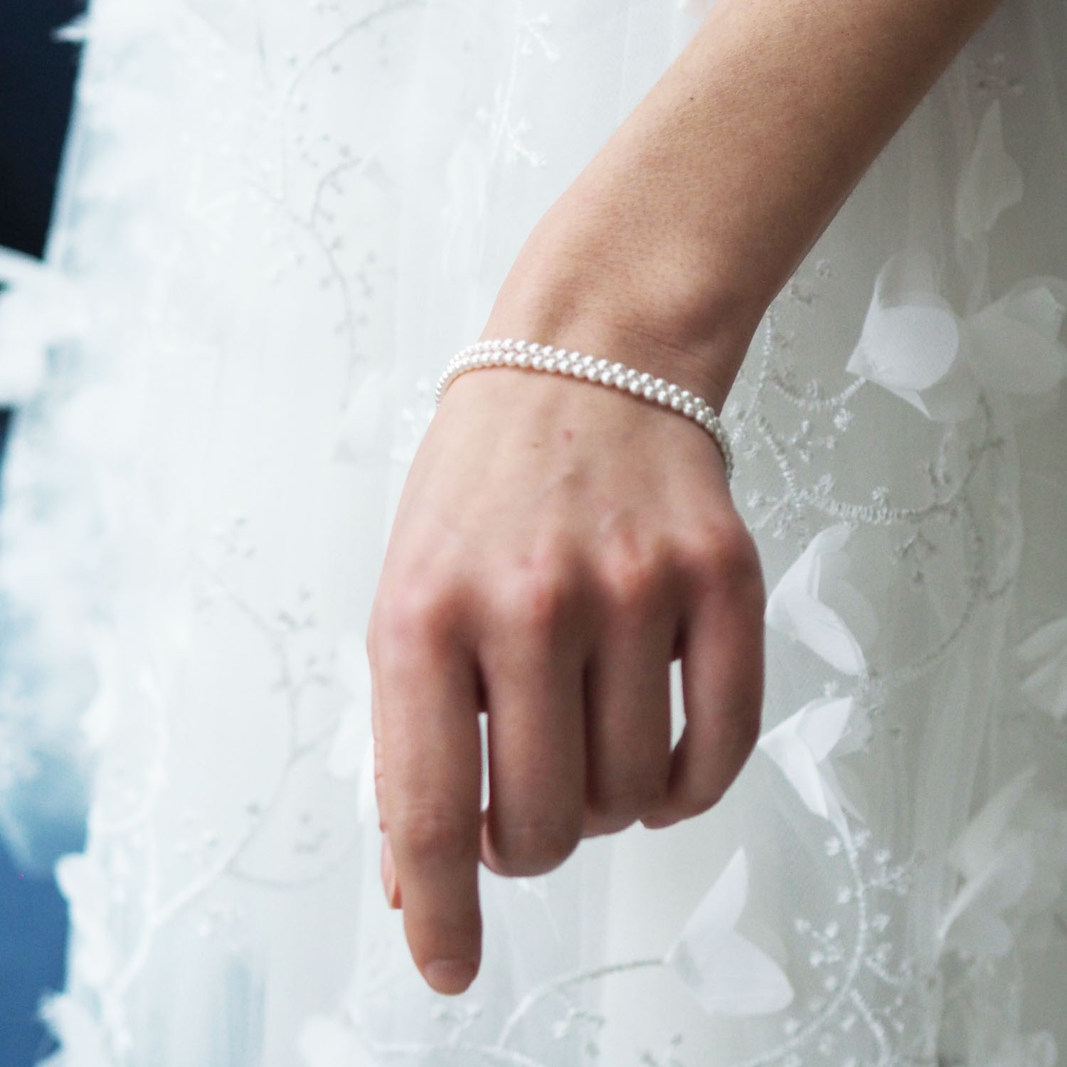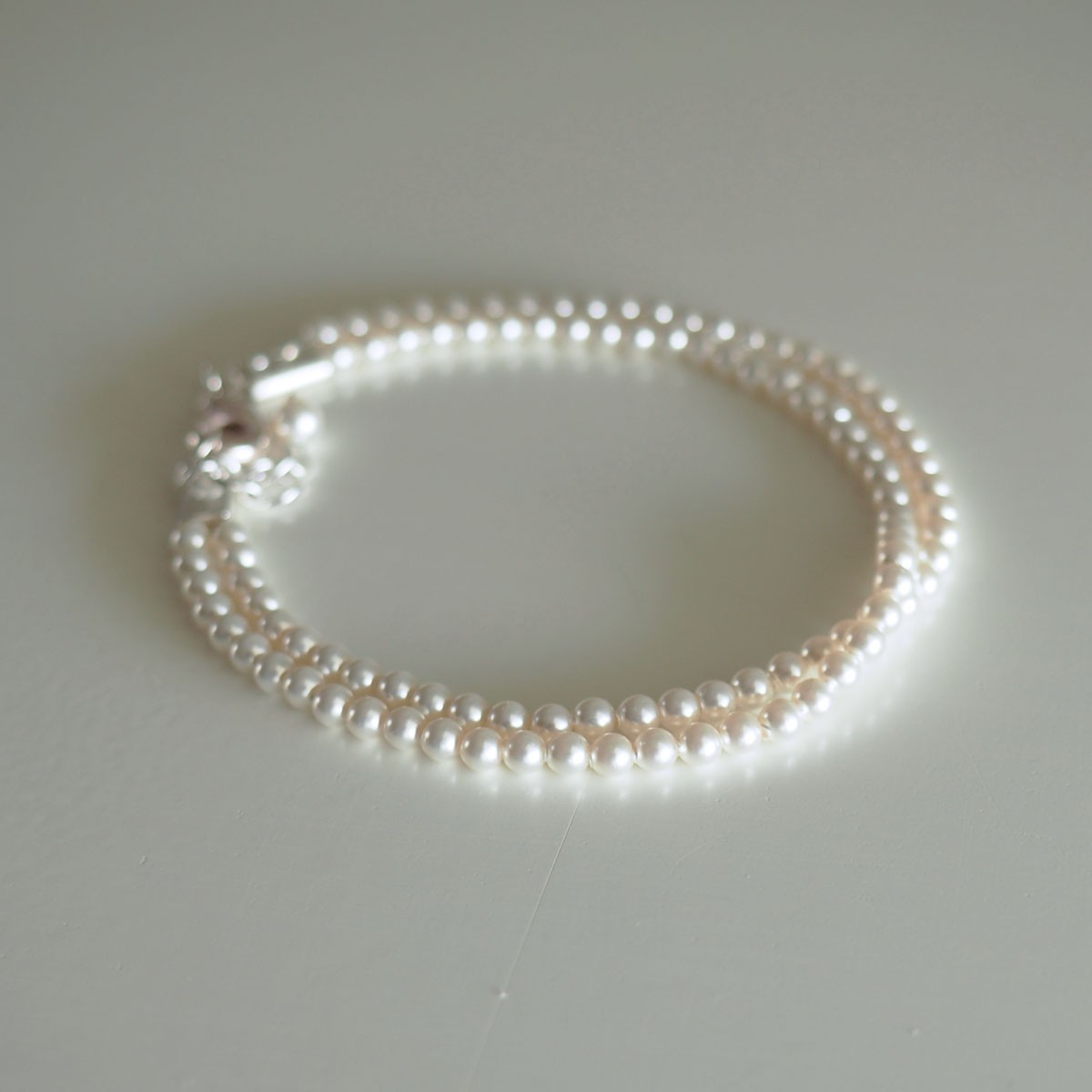 Simple et élégant, ce bracelet est fait de deux fins rangs de perles de Swarovski.