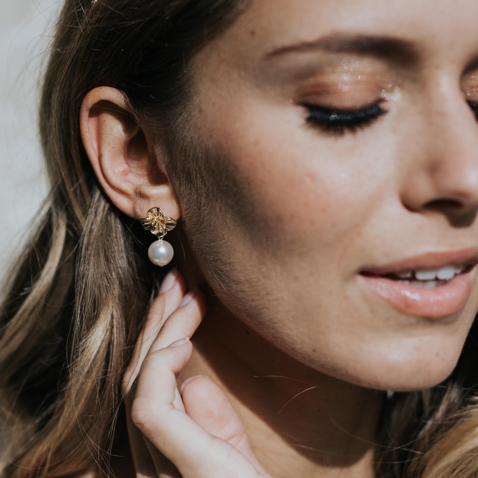 Montées sur une fleur finement travaillée, elles se déclinent en trois versions : perle nacrée, perle de porcelaine ou perle de cristal.
