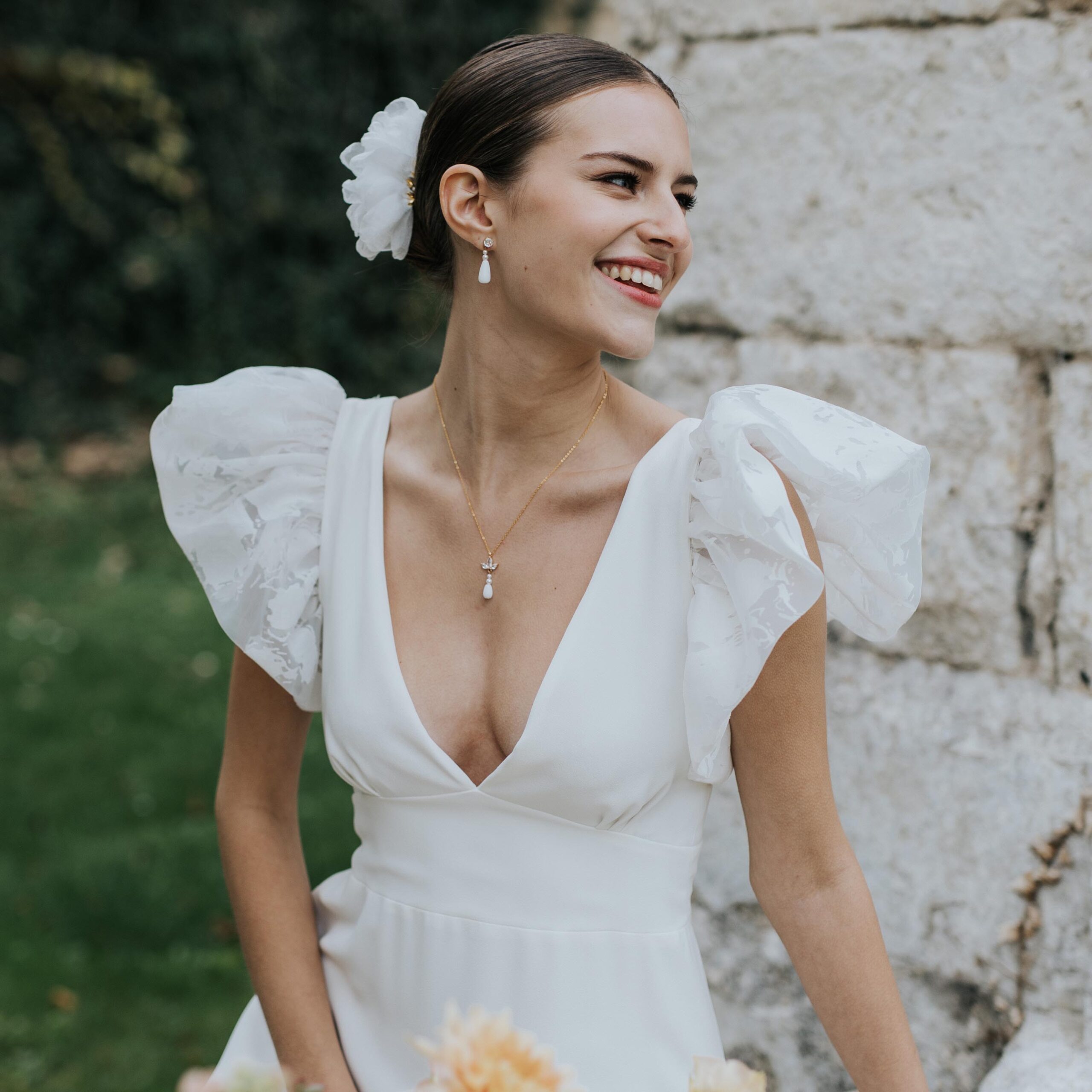 Vous souhaitez apporter quelques modifications à un produit ? Envoyez un petit message à . Teinte, taille, style, nous trouverons comment personnaliser votre bijou de mariage. Tous nos bijoux et accessoires sont montés à la main avec des matières de qualité.