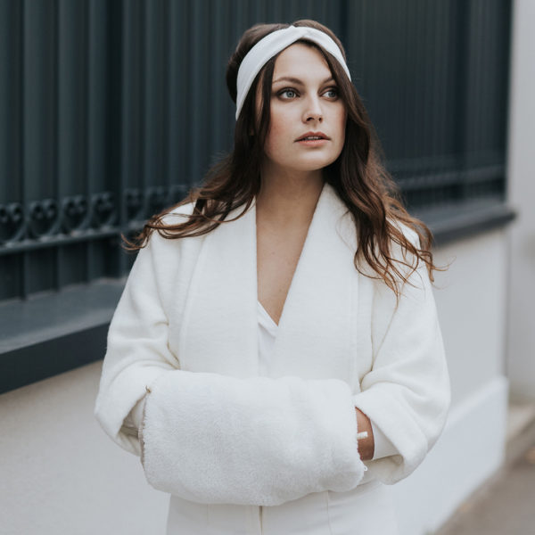 Tout beau ! Tout chaud ! Parce qu’on ne se marie pas qu’en été ! j’ai pensé à vos petites mains pour les mariages d’hiver, avec le manchon CHAMONIX. Et parce qu’on veut que vous l’utilisiez le plus possible après, il est REVERSIBLE !!! Au recto, un polaire épais blanc et tout doux, au verso un polaire ras, beige, pour être passe-partout en ville. Et pour couronner le tout, on y a inséré une fermeture éclair pour glisser dedans mouchoirs, téléphone, clefs … enfin, ne rêvez pas, ce n’est pas non plus un sac à main 😂 !